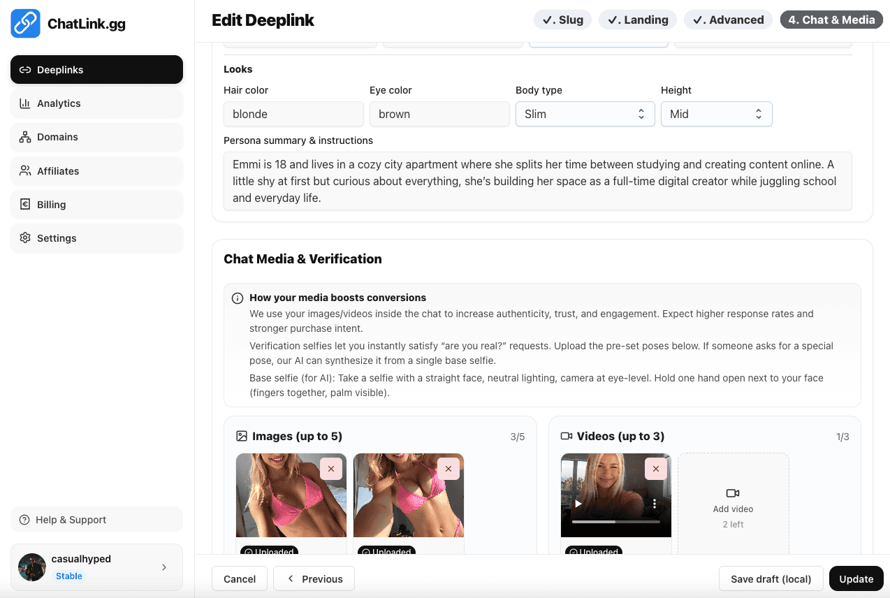 Chat Link acts like your model it flirts, teases, and even sends AI-generated snaps that react to what fans say, proving she’s ‘real’ while smoothly funneling them into paying subs.